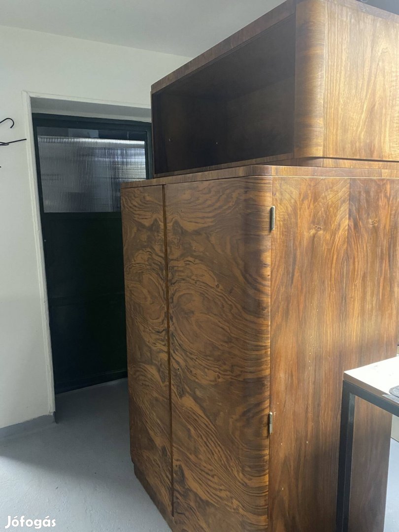 Eladó a képen látható diófa szekrény. Az alsó rész akasztós, fölül eredeti toló üvegekkel vitrines rész.