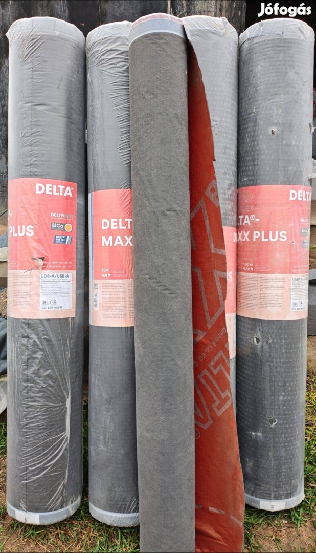 Eladó 4 egész tekercs és egy kicsit több mint fél tekercs Dörken Delta Maxx Plus tetőfólia. Tekercsenként 75 m2, tehát kb. 340 m2 a teljes mennyiség. Leírás: Dörken Delta-Maxx Plus szabadalmaztatott, integrált ragasztósávval rendelkező, prémium kategóriás alátétfólia. A Delta-Maxx Plus ideális megoldás teljes szarufaközt kitöltő hőszigeteléssel rendelkező tetőszerkezetekhez, ezenkívül fektethető teljes deszkázatra is, valamint beépíthető ideiglenes fedésként és zárt burkolatú, átszellőztetett homlokzatkonstrukció homlokzati fóliájaként.