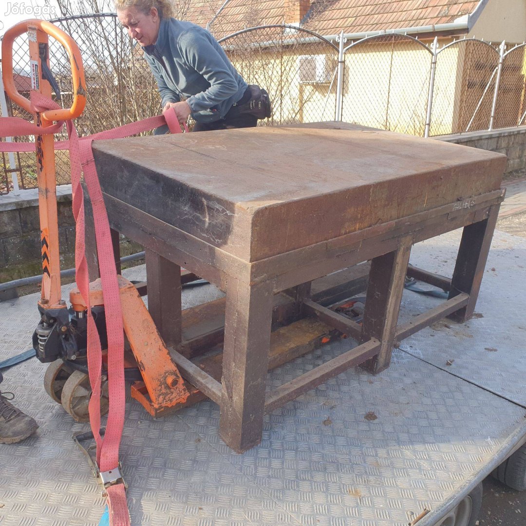 Eladó a képen látható vastag egyengető asztal, kb 2000 kg körül van, igen masszív vas láb fém tartó keret, igény esetén szállítás megoldható,