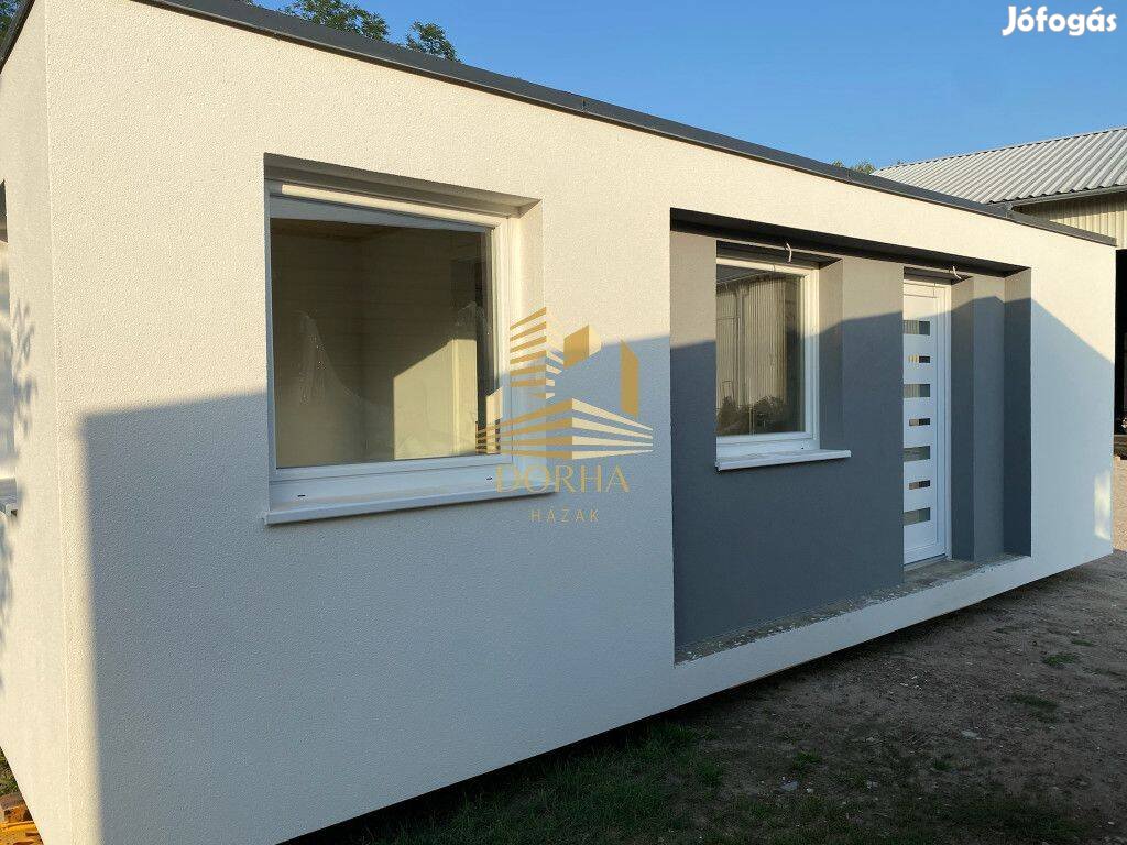 A komfortot padlófűtés garantálja, amit WiFi-s termosztáttal szabályozhatsz, a nyári melegben pedig a beépített klíma gondoskodik a hűs levegőről. A fürdőszoba teljesen felszerelt, a ház többi része viszont bútorozásra vár - így saját ízlésed szerint rendezheted be!