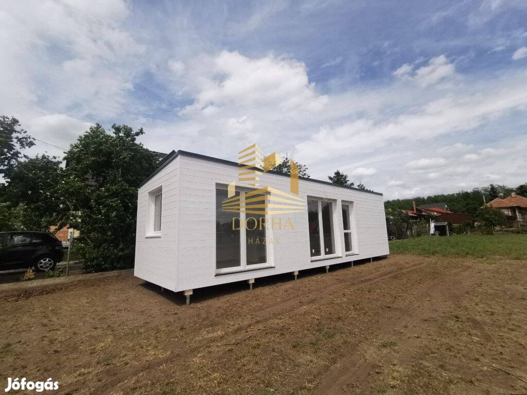 A komfortot padlófűtés garantálja, amit WiFi-s termosztáttal szabályozhatsz, a nyári melegben pedig a beépített klíma gondoskodik a hűs levegőről. A fürdőszoba teljesen felszerelt, a ház többi része viszont bútorozásra vár - így saját ízlésed szerint rendezheted be!