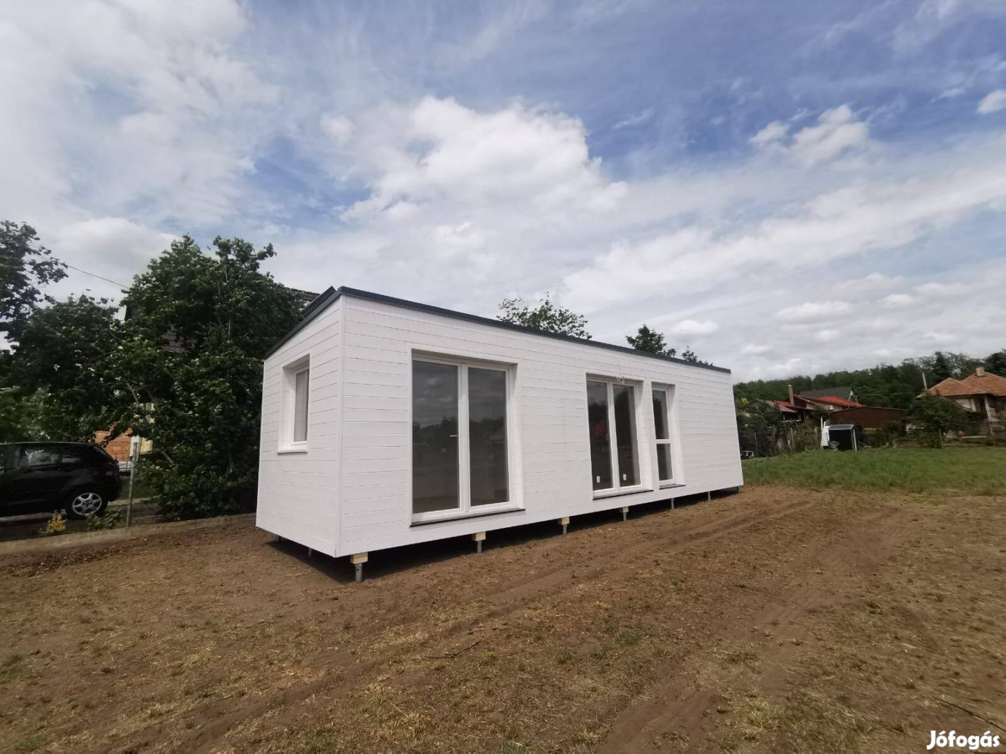 A komfortot padlófűtés garantálja, amit WiFi-s termosztáttal szabályozhatsz, a nyári melegben pedig a beépített klíma gondoskodik a hűs levegőről. A fürdőszoba teljesen felszerelt, a ház többi része viszont bútorozásra vár - így saját ízlésed szerint rendezheted be!