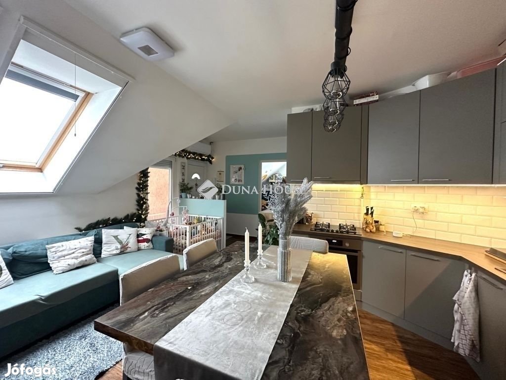 Dunavarsány, Kisvarsány régiójában, pár perc sétára a Vasútállomástól, extra csendes környezetben, 2016-ban épült lakóparkban eladó egy bruttó 78 négyzetméteres, tetőtéri lakás 3 külön nyíló hálóval, erkéllyel és saját padlás résszel, mely még egy szobának adhat lehetőséget. Nettó 73 négyzetméter a használati megosztón.
