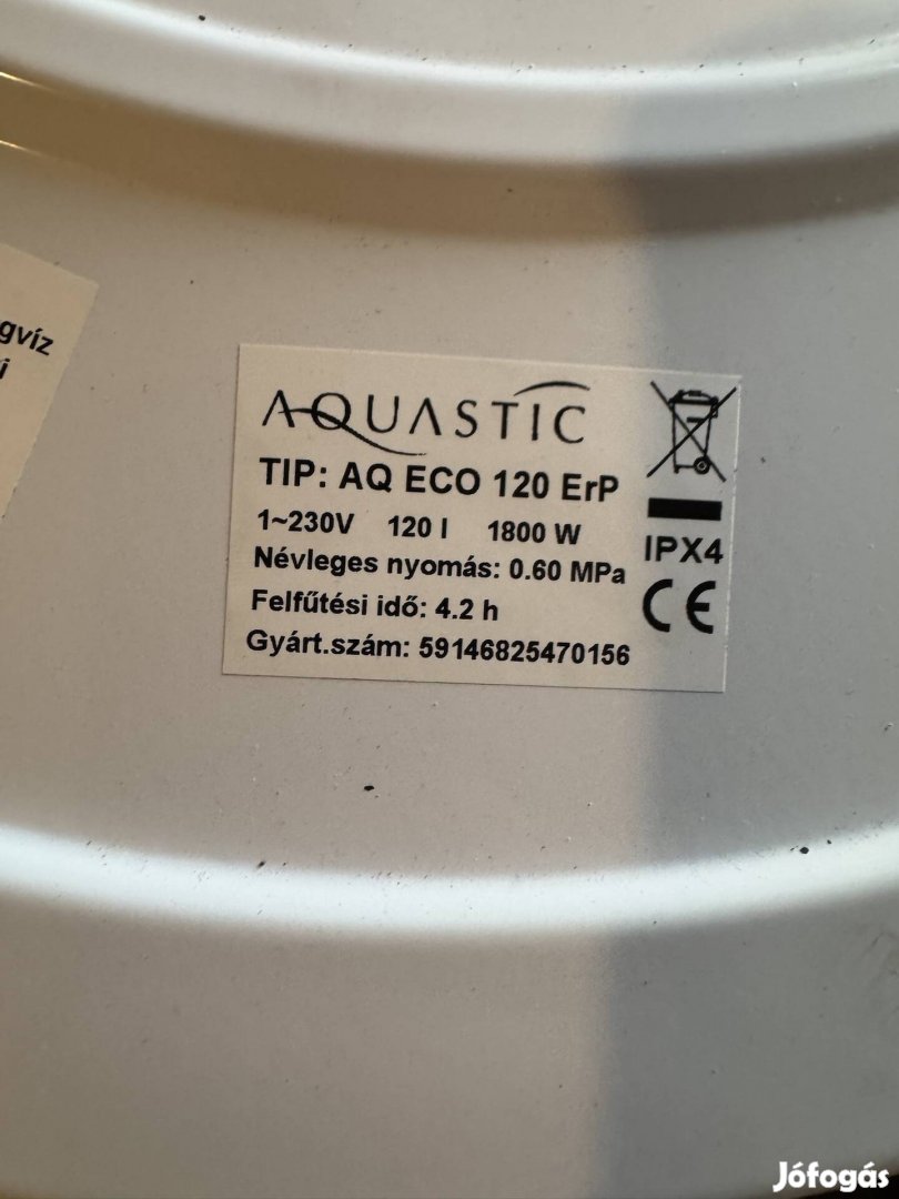 Eladó Aquastic 120L Bojler külseje sérült! Felszerelés után leesett, külseje megsérült de hibátlanul működik! Újonan lett vásarolva kb 5napot volt használatban miután leesett, azért adom el mert kicserélték egy újra. Kűlső sérülései miatt ennyi az ár!