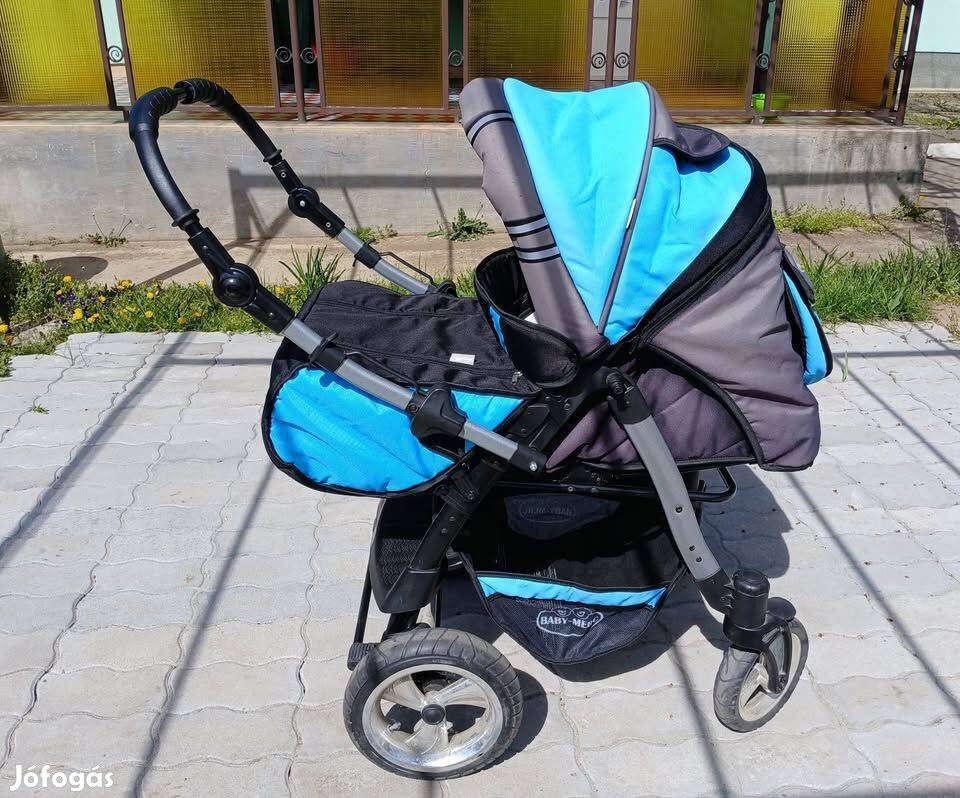 Eladó a képeken látható Baby Merc Agat típusú babakocsi. Jó állapotú, tiszta. Fekvő kocsiból ülő kocsivá (sport babakocsivá) alakítható. A tolókar áthajtható, tolható úgy is, hogy szembe állunk a gyerekkel, és úgy is, hogy a gyerek mögött állunk. A kisebb kerekek bolygó kerekek, lehetővé teszik a könnyű irányíthatóságot. Télire lábzsák felhelyezhető. Kétféle karfája van: sima és tálcás. A kupola hátra hajtható, rajta felül szellőzőnyílás, hátul pelenkázótáska található. Alul tágas tárolókosár van. Esővédő ponyva is van hozzá. A babakocsi tartozéka (benne van az árban) egy babahordozó, és egy mózeskosár amelyek a babakocsiba behelyezhetőek. A babakocsi huzatai levehetőek, moshatóak. A babakocsi könnyen összecsukható, lehetővé téve a könnyű szállíthatóságot. Budapest mellett Maglódon található.