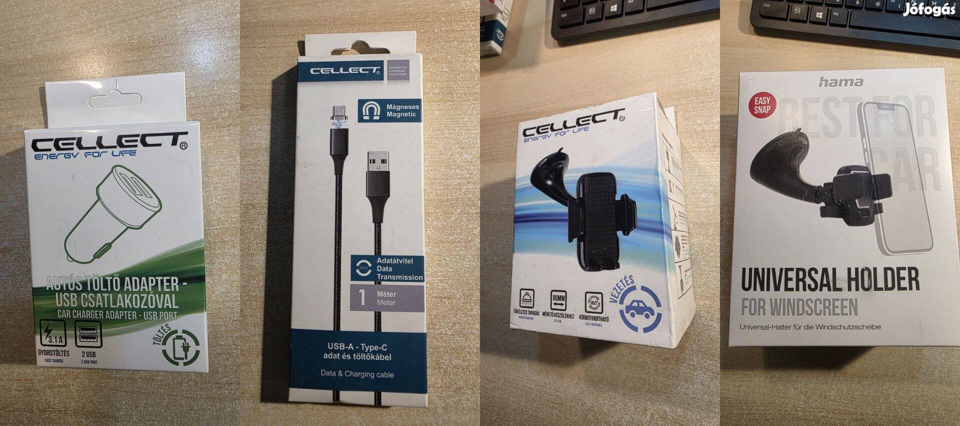 eladó Cellect, Hama, autós mobiltelefon tartó, mágnesen usb-c töltő, szivargyújtós töltő.