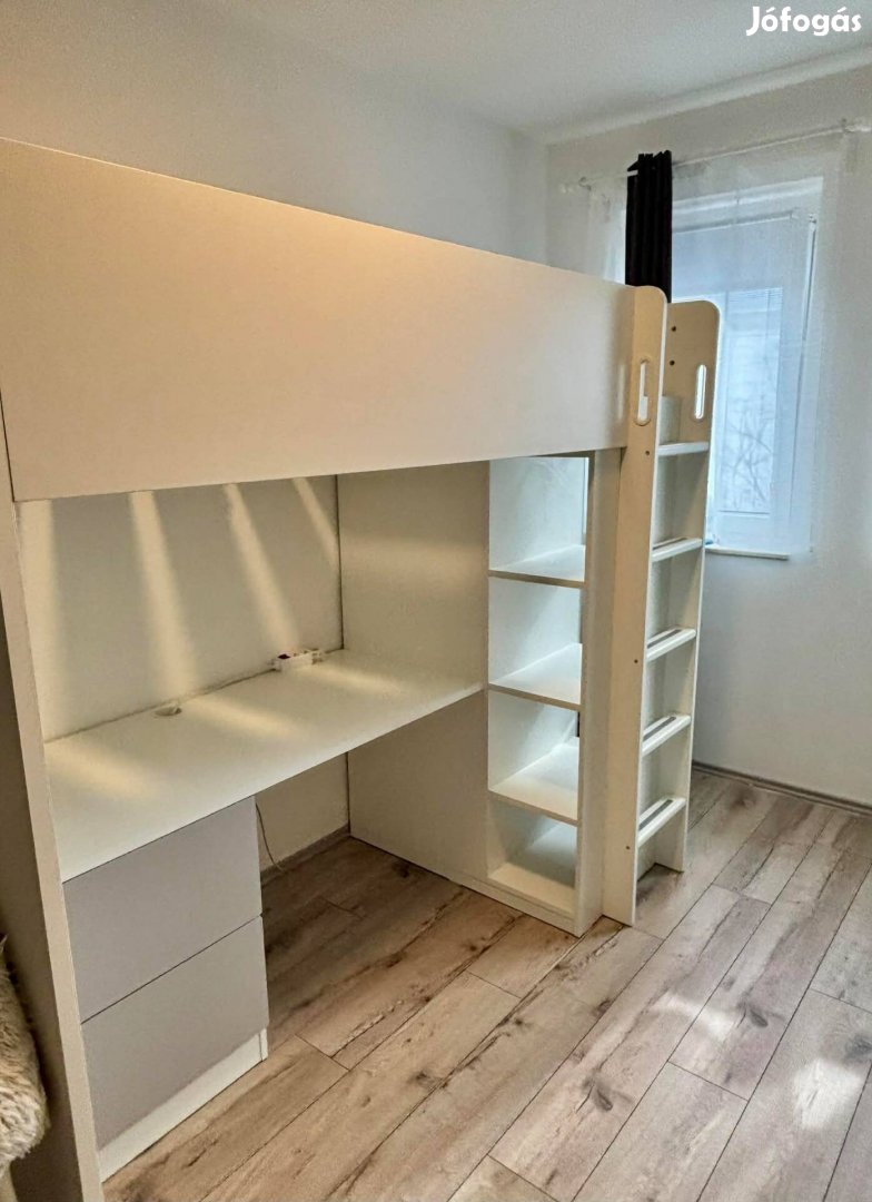 Eladó egy megkímélt állapotú 1,5 éves IKEA Smastad galéria ágy szekrénnyel asztallal és fiókkal! Szétszereléeben tudunk segíteni de a szállításban nem!