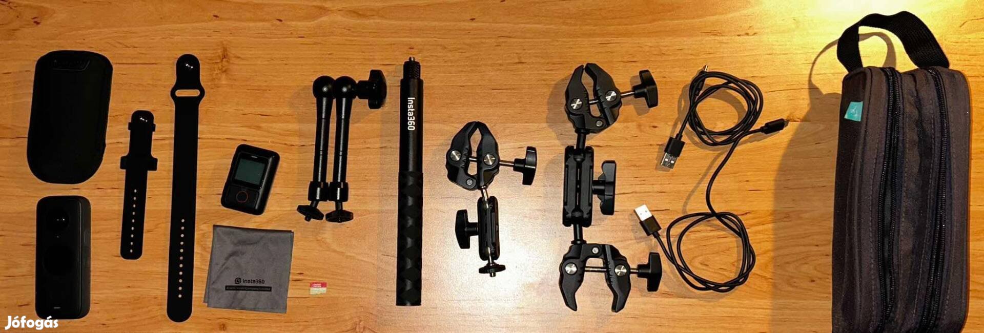 Eladó Insta360 x2 kamera újszerű állapotban távirányítóval és a képen látható sok tartozékkal egyben (bot, tartókonzolok, távirányító, eredeti kábelek, SD kártya).