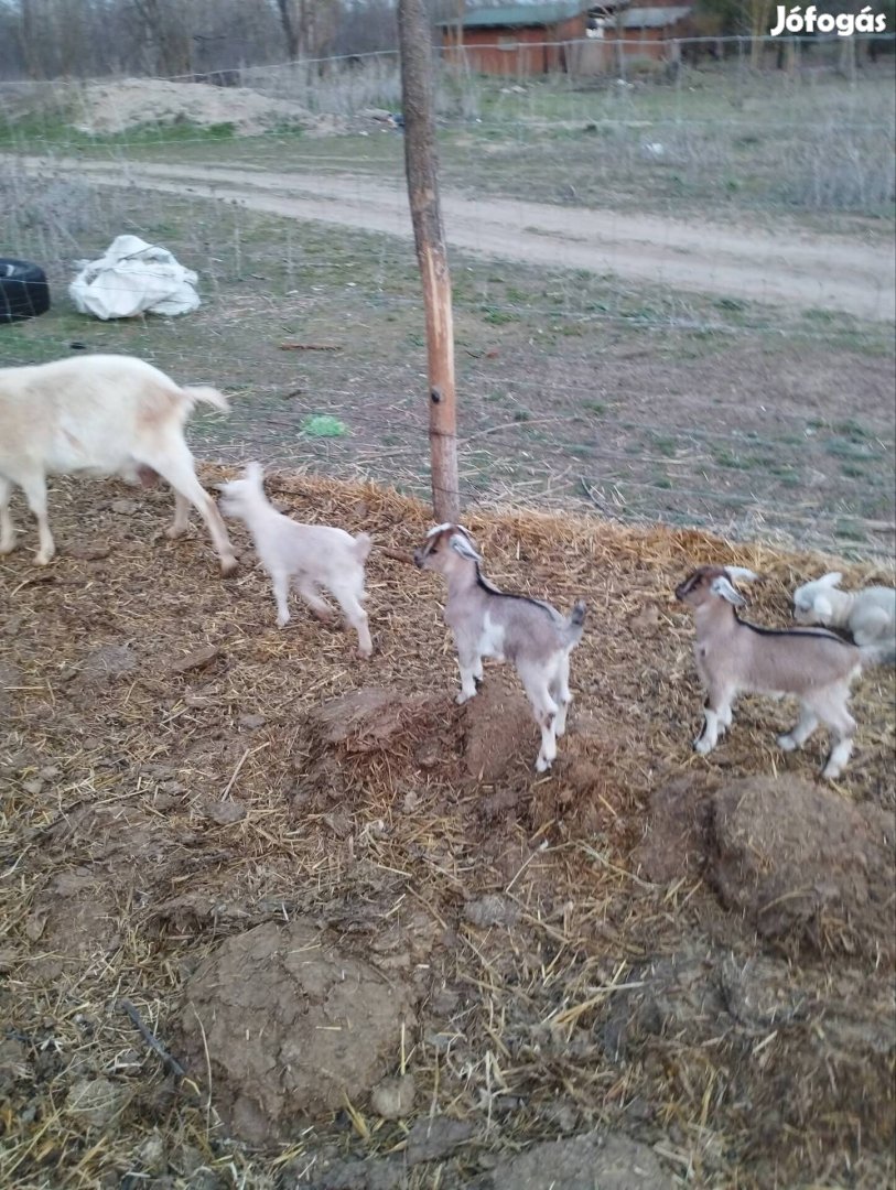 Első ellésű kecske 3 gidával 1 bak, 2 nőstény
