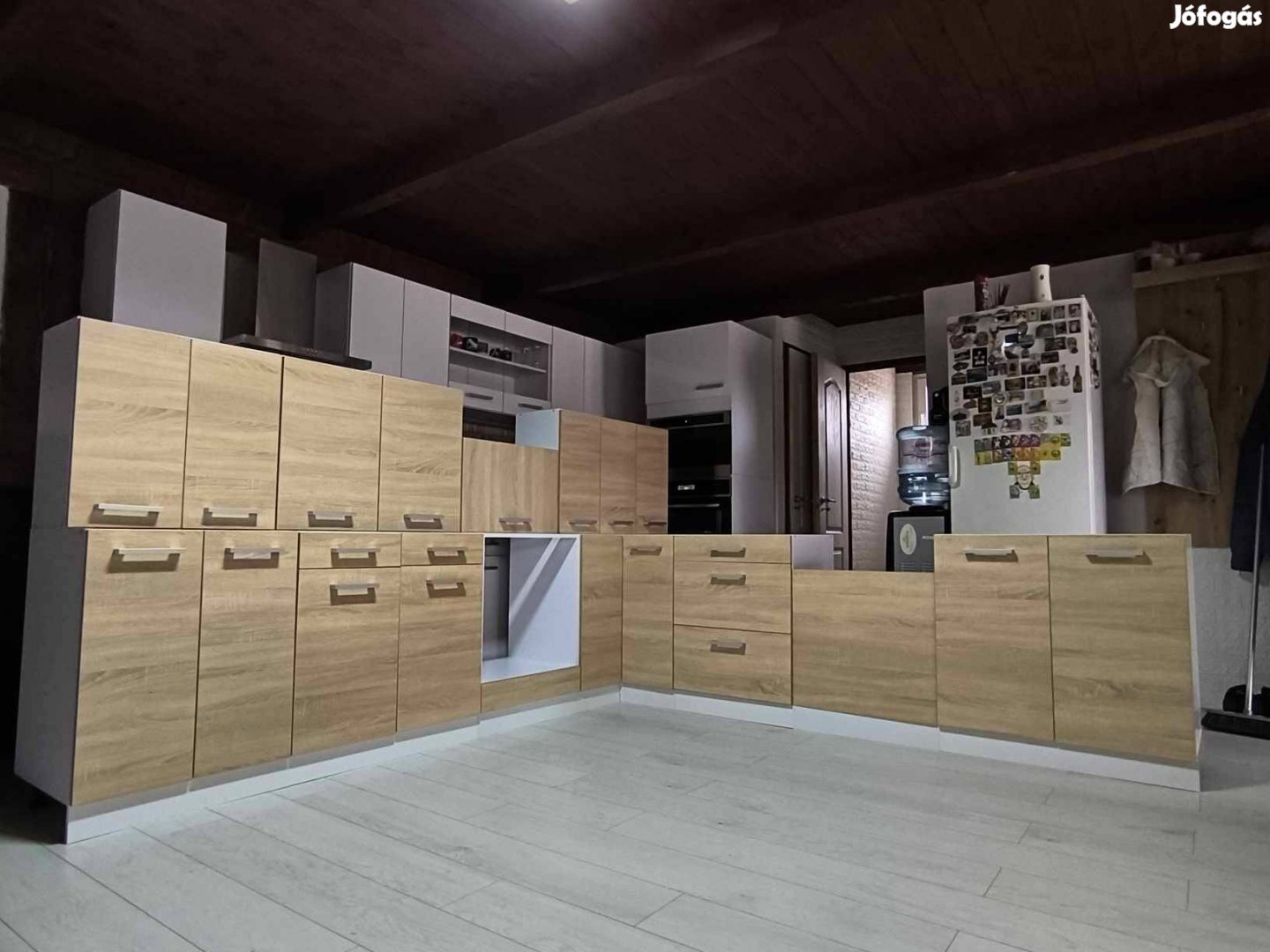 Eladó Új bemutatódarab 3x2,8 fehérsarok konyhabútor sonomatölgy front
