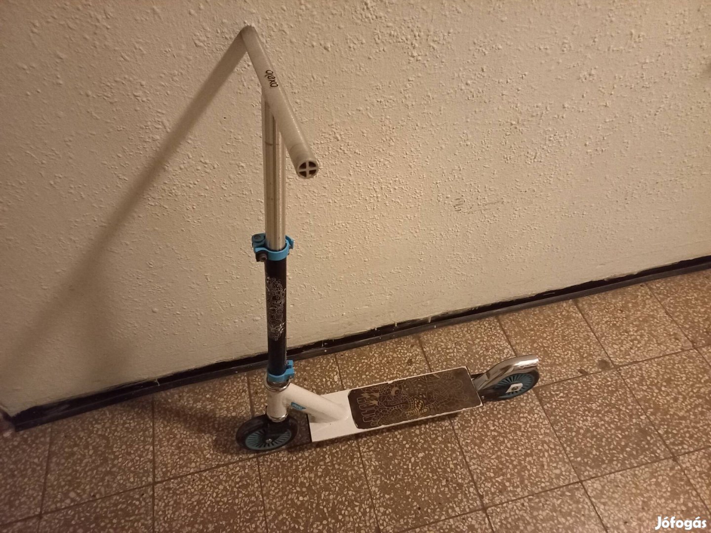 Eladó használt Oxelo gyermek roller. Jelenleg a kormányról hiányzik a markolat. Kormány 3 magassagban állítható.
