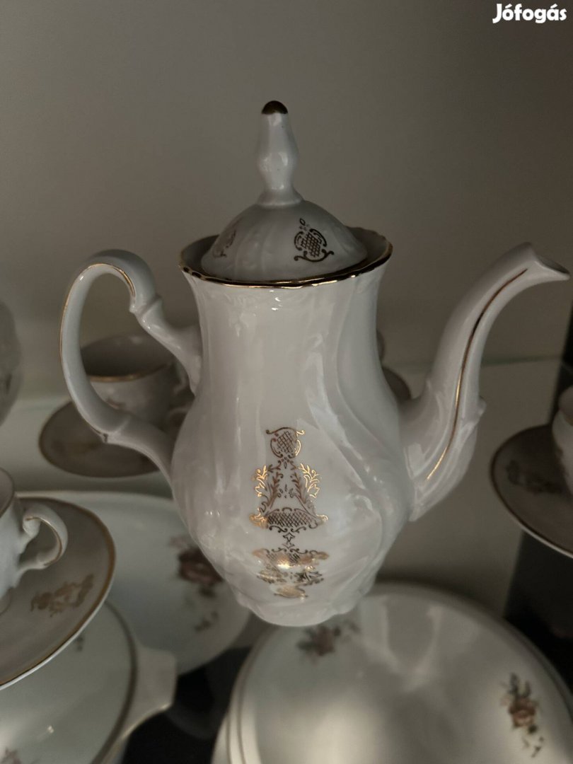 Eladó soha nem használt 15 darabból álló fehér aranyszélű kávéskészlet.