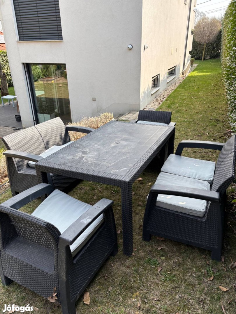 Eladó a képeken látható kerti garnitúra szett, párnával.