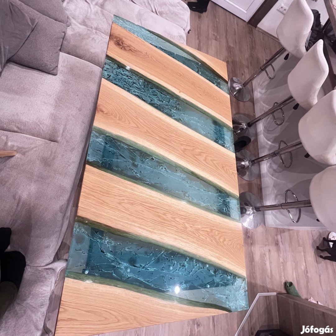 Eladó 150x80cm tömör tölgy fa ,epoxy öntéssel,egyedi kézi készítésű étkezőasztal.