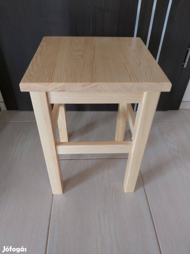 Eladó új, tömör borovi fenyőből készült masszív, gyönyörű hokedli, kisszék, natúr fenyő színben, lakkozva.
