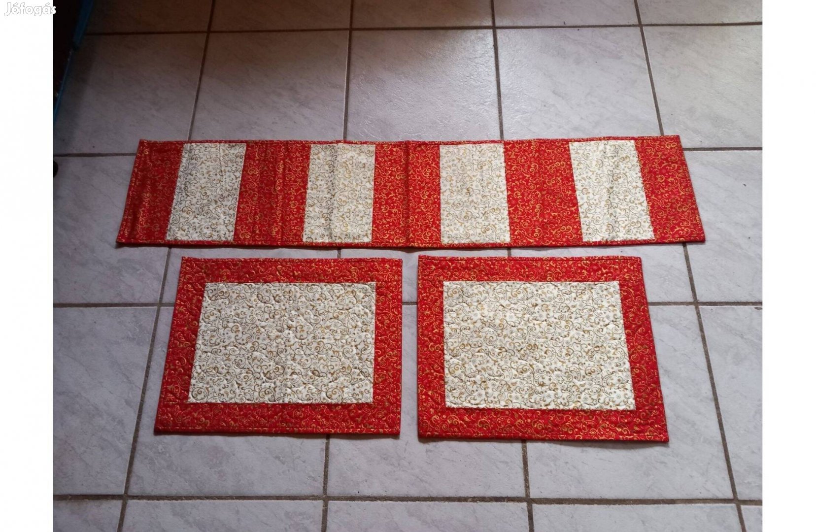 Elegáns Asztali futó és 2 db tányéralátét szett , arany-bordó - Új
