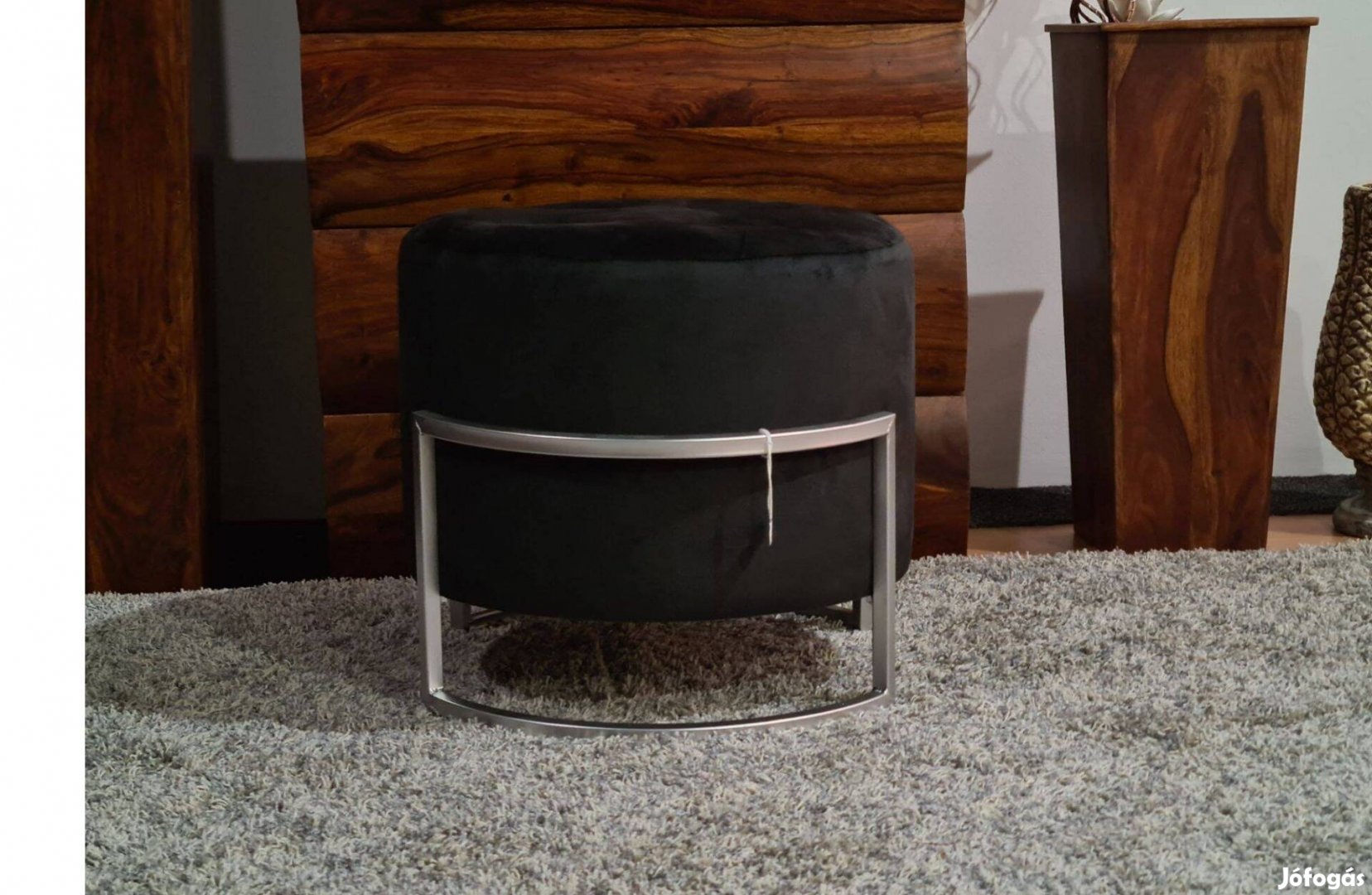 Elegáns kör formájú leülőke fekete bársony szövettel 40 cm
