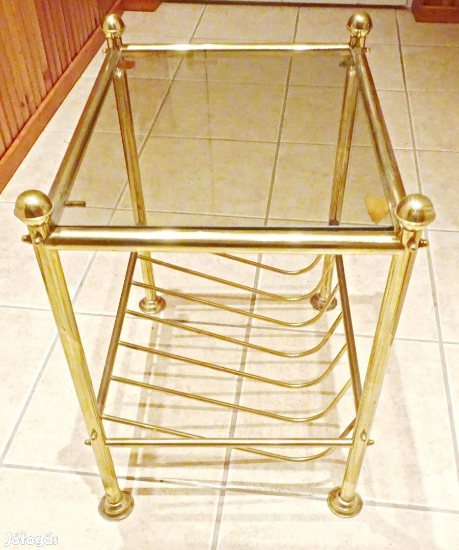 Réz kis asztalka, 1 füstszínü üveglappal újságtatóval eladó 7.000,- Ft újszerü