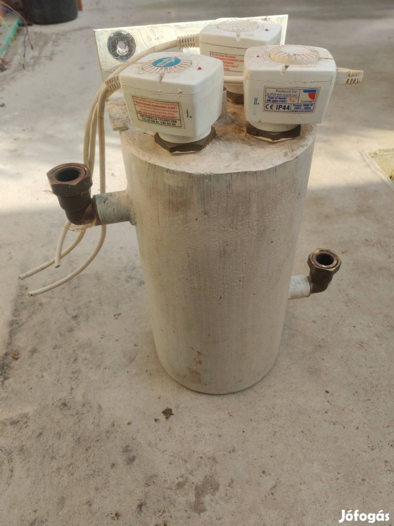 Eladó a képeken látható bontott valószínűleg kisipari 3db elektromos fűtőpatronnal ellátott vizes fűtőegység 1" csatlakozásokkal. Helyileg Gödön átvehető. 45cm magas 25cm átmérőjű.
