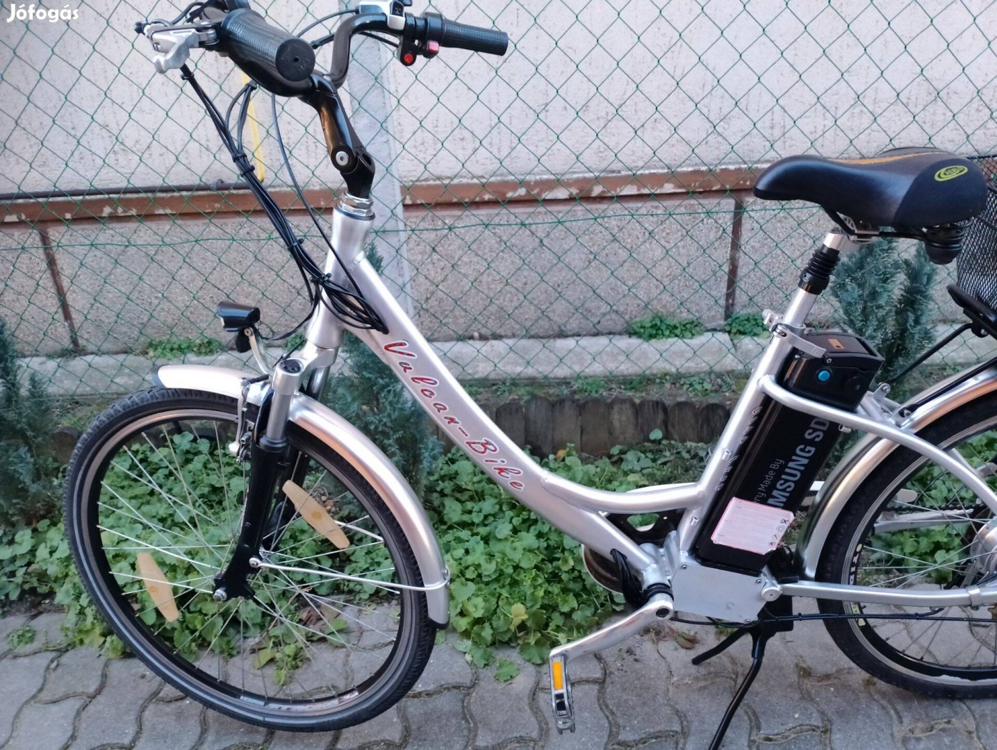 Vulcan fantázianevű, 26-os, hét sebességes, 42 V-os, 9 amperórás, litium akkumulátoros elektromos kerékpár eladó. Használható gázkarosként vagy pedelec rendszerben is, amikor a tekerést könnyebbé teszi a motor. Kényelmes nyereggel rendelkezik. A biztonságot az első patkófék, valamint hátsó dobfék szolgálja. Világítást az akkumulátor táplálja. A hátsó kosár és a töltő tartozék. Hetven2452554