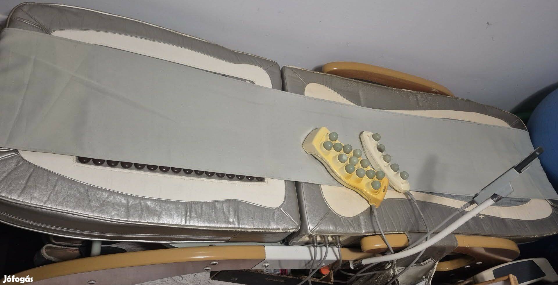 Költözés és kihasználatlanság miatt sürgősen eladó egy elektromos jádeköves masszázságy (akupresszúrás, hőterápiás). Kézi vezérlővel, több programmal, lábrészen is hőterápiás funkcióval. A felsőrész liftes. Esztétikai hibákkal, a kárpit kopott, de működő motorral. A két kézi kezelővel van valami probléma, mert nem mindig világít, így olyankor nem is melegszik. Ebben az állapotában eladó, február 3-ig lehet elszállítani.