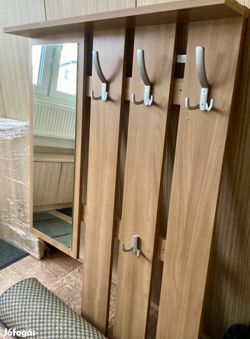 88 x 113 cm, a tükrös rész ebből 33,5 x 89 cm, az akasztós 50 cm széles. A teteje mélysége 14 cm