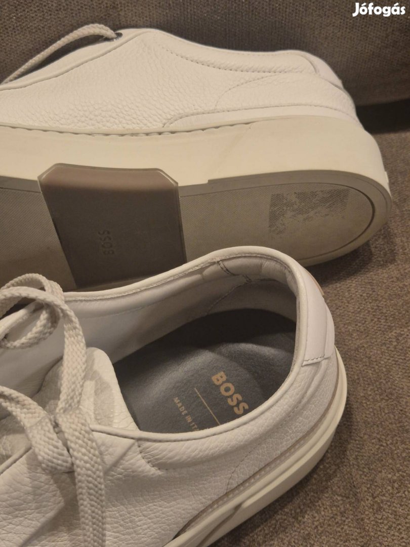 Budapest Vörösmarty téri Boss üzletben vásárolt 1-2 alkalommal hordott Boss Gary Teen cipő eladó. A képeken látható hogy a címke nyoma sincs lekopva a talpáról. Bolti ára 170 ezer Ft volt, jelenleg is 110 ezer a legolcsóbb. Anyaga 100 % borjú bőr. Személyesen Fóton és Budapesten átvehető, előre utalás után tudom küldeni.