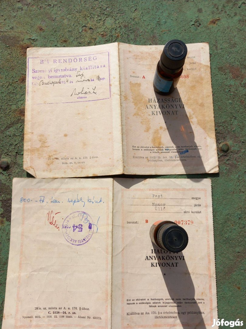 Eredeti Haloti és Születési Anyakönyvi kivonat az 50-es évek elejéről. Ár db ár.