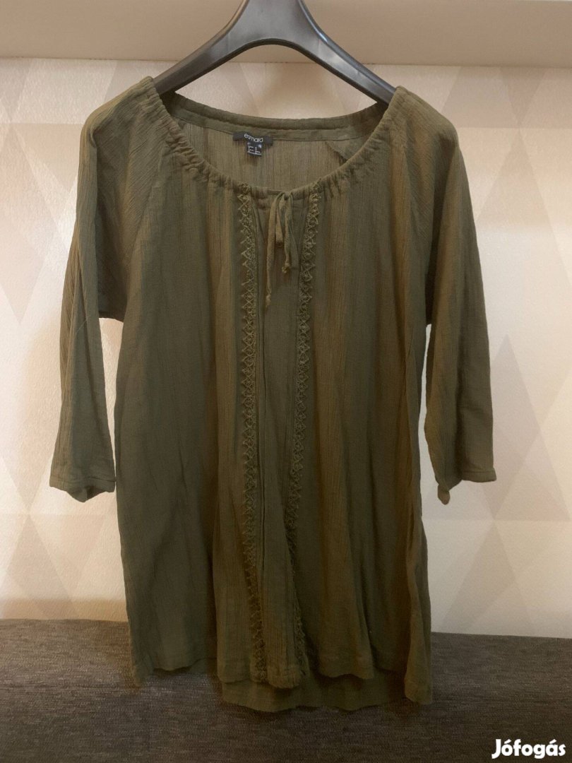 Esmara sötétzöld, gyűrt anyagú pamut blúz, tunika 48-os