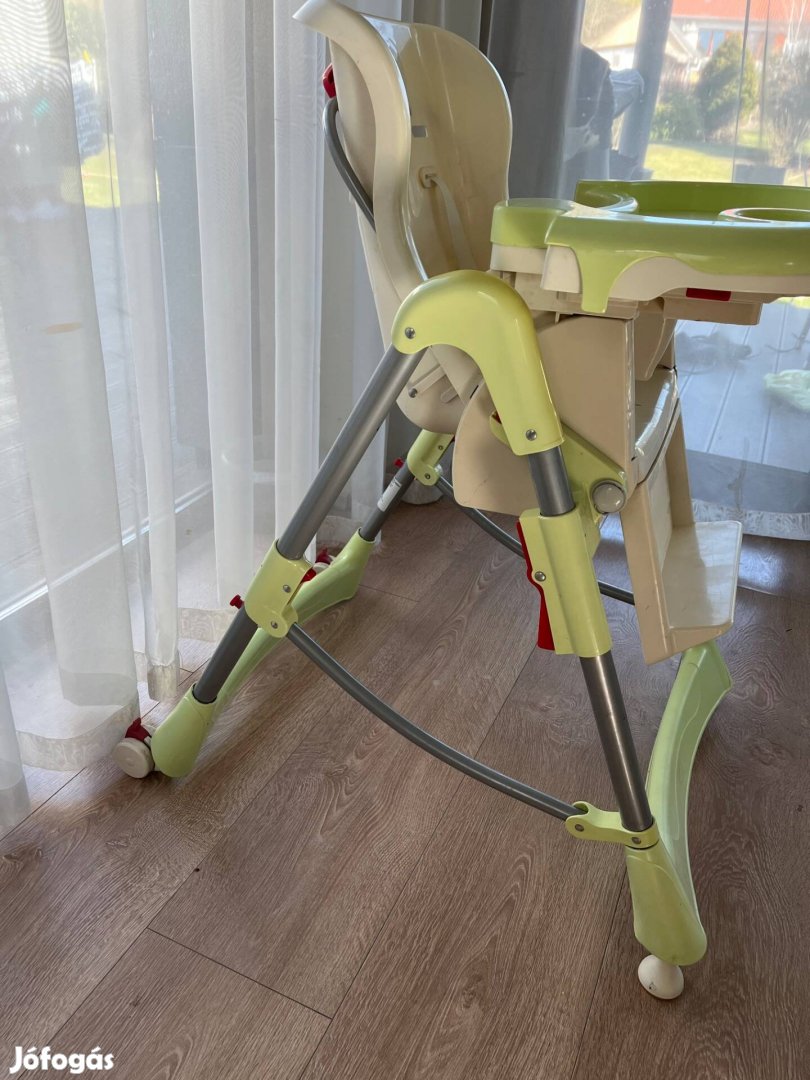 Tiszta, jó állapotú, stabil, masszív vázas etetőszék, több praktikus funkcióval: