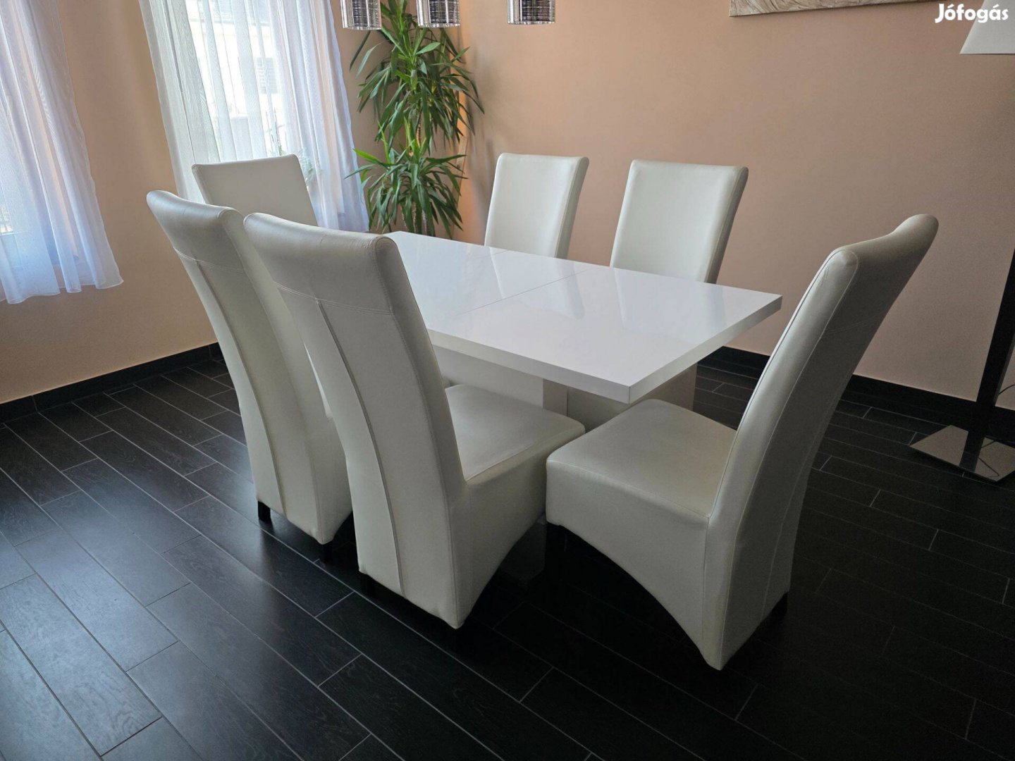 Eladó hat személyes étkező garnitúra. Az asztal 140x90 cm, de 160 cm-re bővíthető. A hibákat fotóztam.