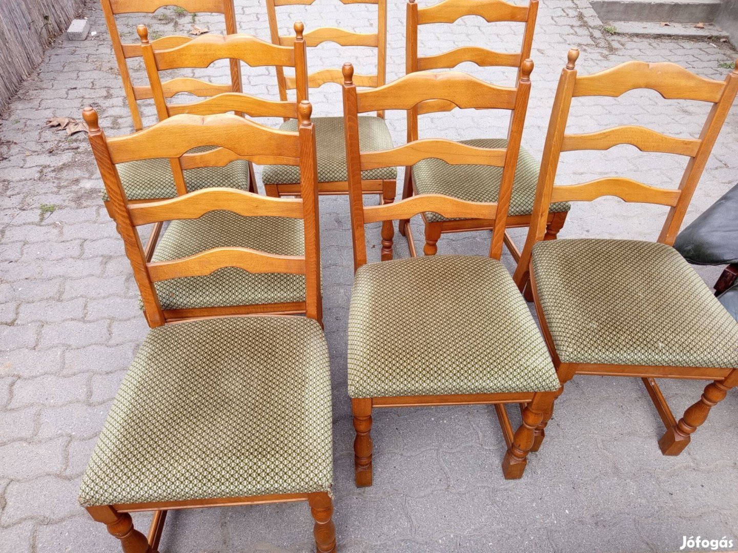 Valódi fa, zöld színű kárpitozott ebédlő székek 10 db. Valódi fa rusztikus 10 személyes étkező asztallal. 110000 Ft. Pest megye Szentendre közelében.