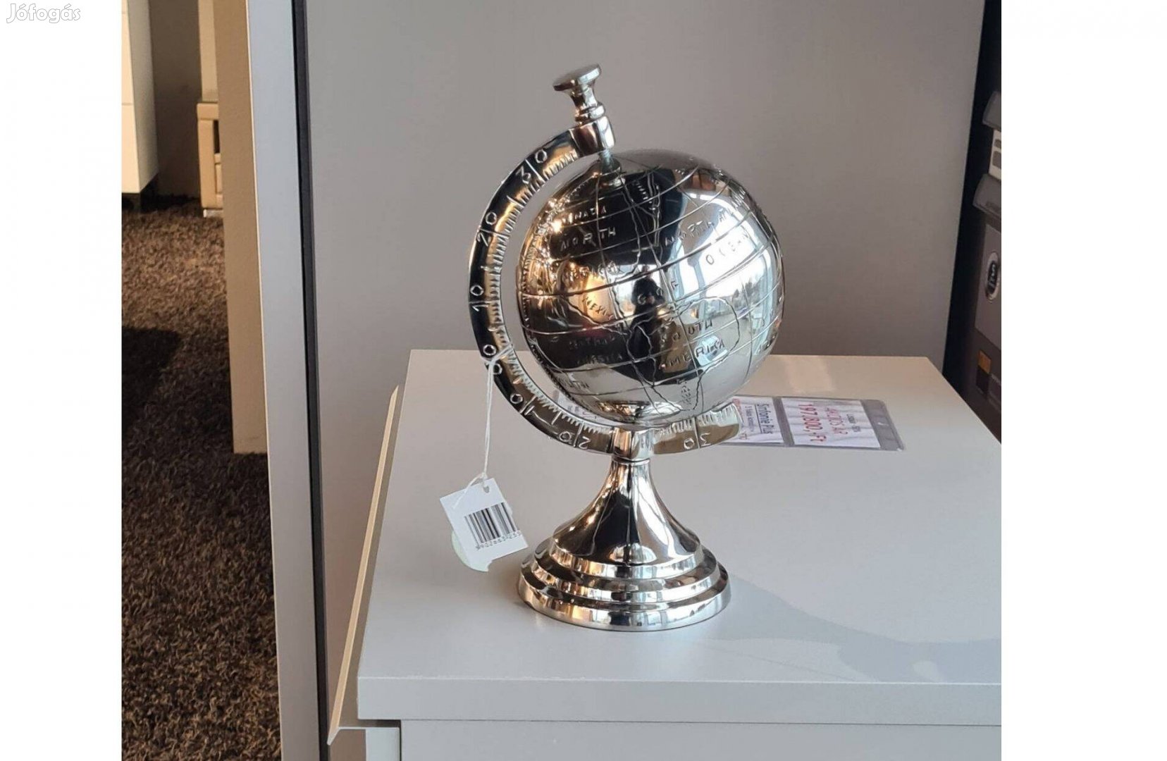 Fém földgömb ezüst színben