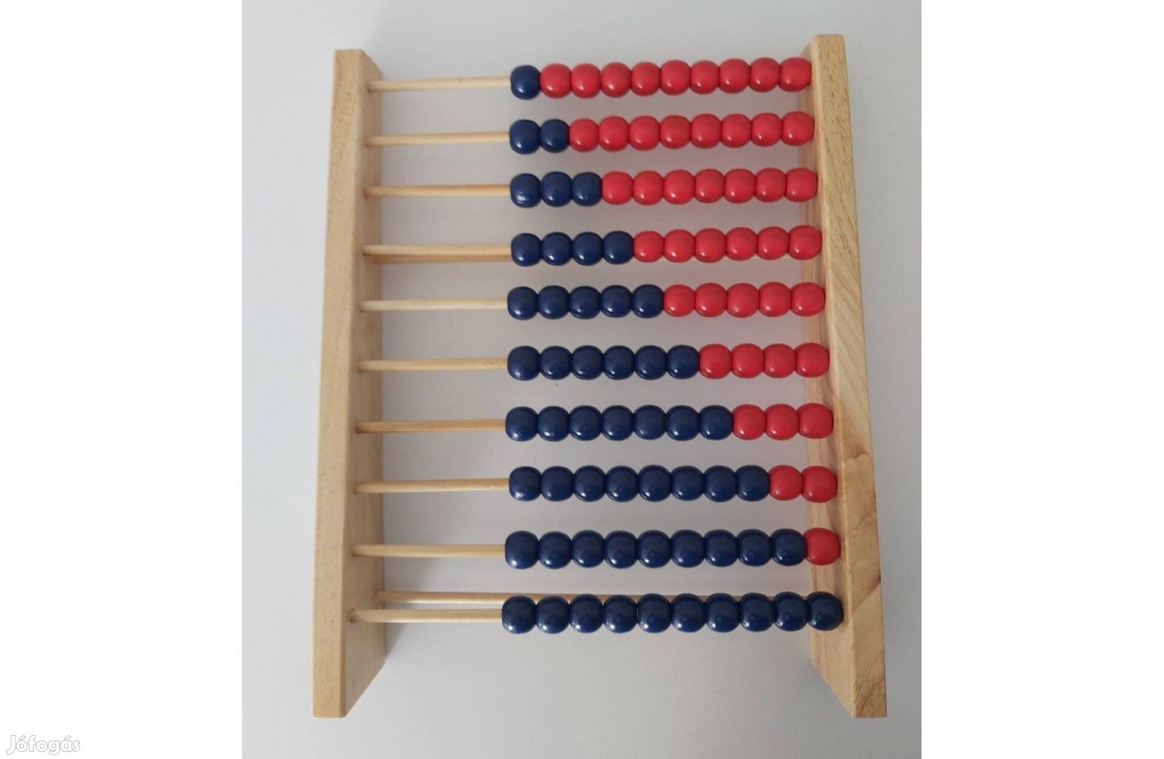 Új, fából készült klasszikus abakusz (golyós számoló), alapvető matematikai műveletek (összeadás, kivonás, szorzás) szemléltetéséhez, valamint vizuális segítség a tanuláshoz, számfelismeréshez.