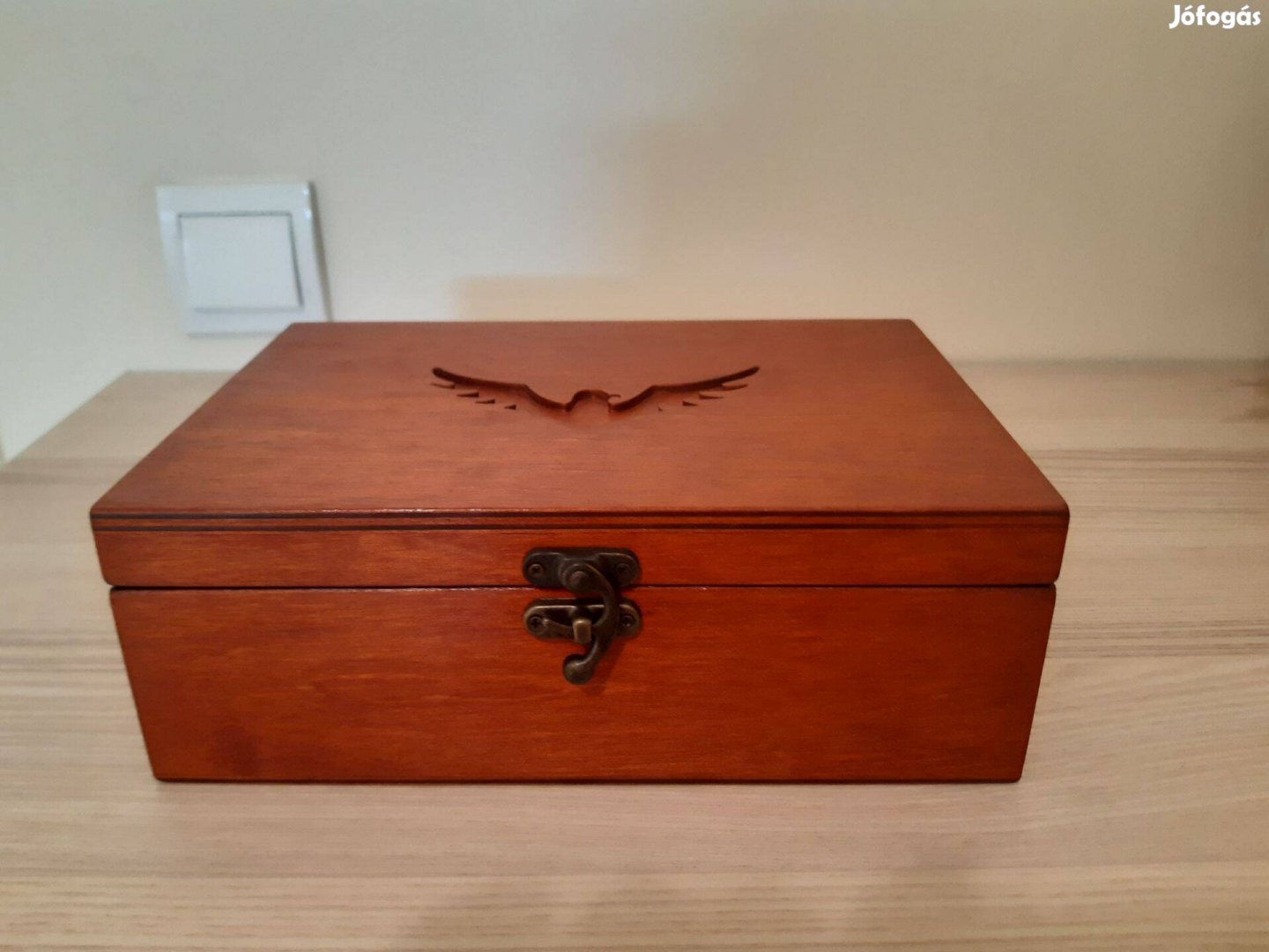 Eladó fa ékszertartó doboz. Belül rekeszekre osztott.