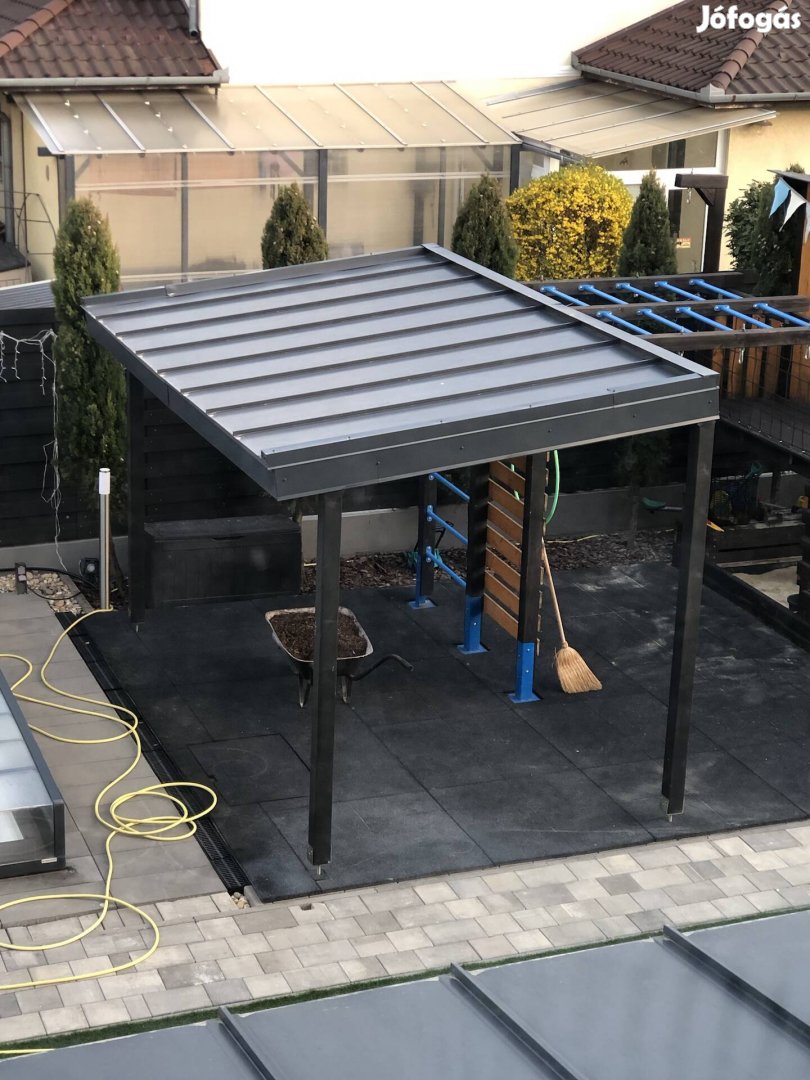 223 cm mély 400 cm széles. 3 láb jár hozzá, mert jelenleg egy mászókával van összeépítve. A tetőben 20cm kőzetgyapot szigetelés van, a teteje antracit színű korcolt lemez, alul lambériával burkolva. Most venge sötétbarnára van pácolva a fa rész. A szétszedés, szállítás a vevő feladata.