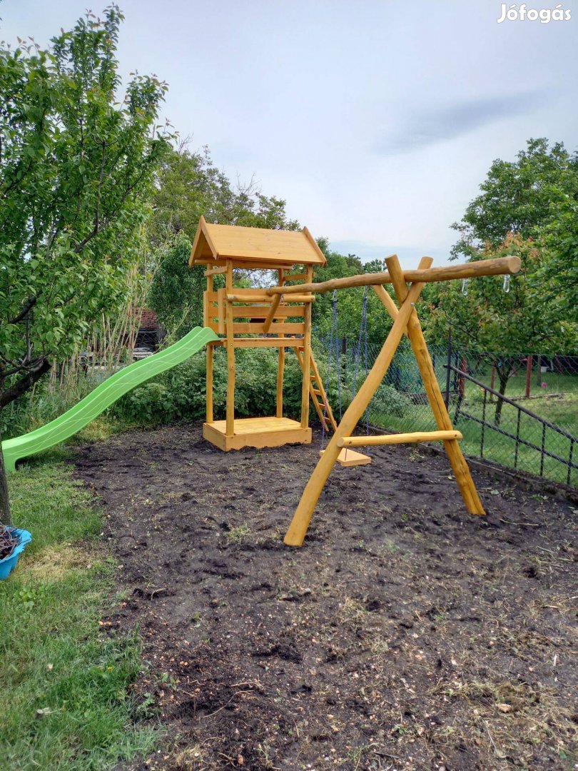 Fa torony csúszdával ,2 darab hintával ,alul homokozóval .