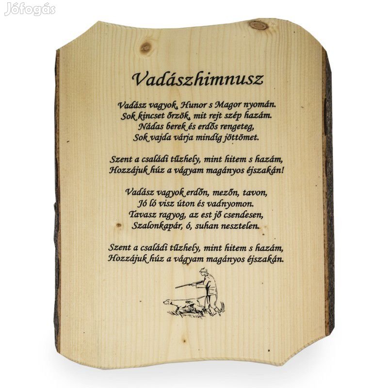 Kérges fára írt "Vadászhimnusz" fali dísz, kb. 25x15-20 cm. Mivel kézműves termék, a méretek, a fa erezete, színárnyalata kis mértékben eltérhet.