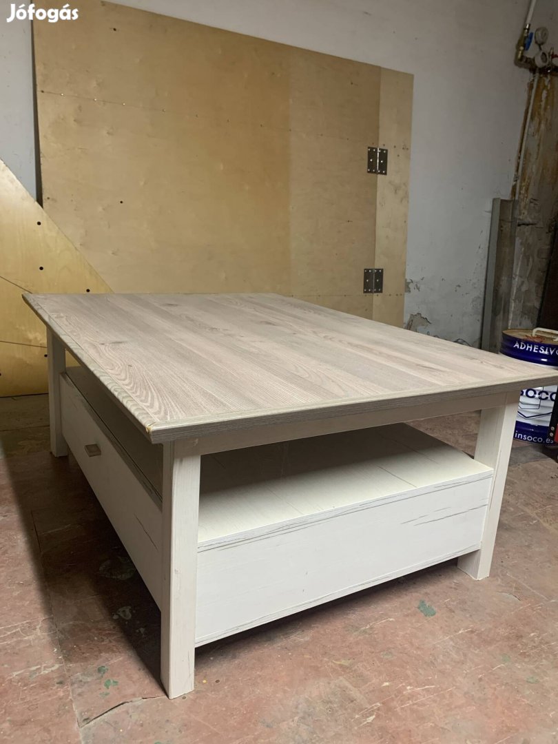 Eladó dohányzó asztal fiókos és nyitott tároló résszel. Apróbb sérülés látható a sarkain ezen kívül hibátlan.