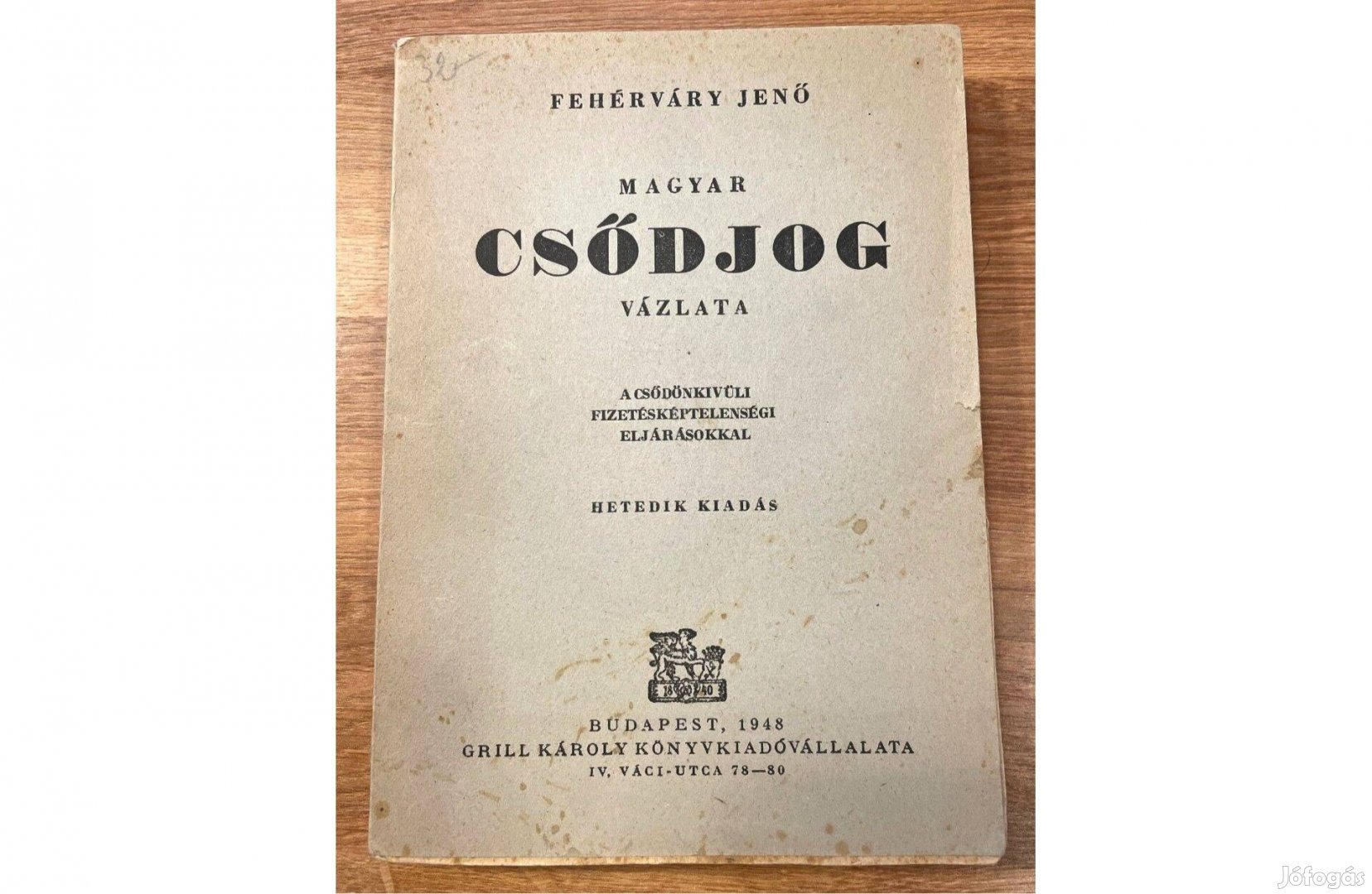 Fehérváry Jenő Magyar csődjog vázlata antikvár régi könyv jogi szakkön