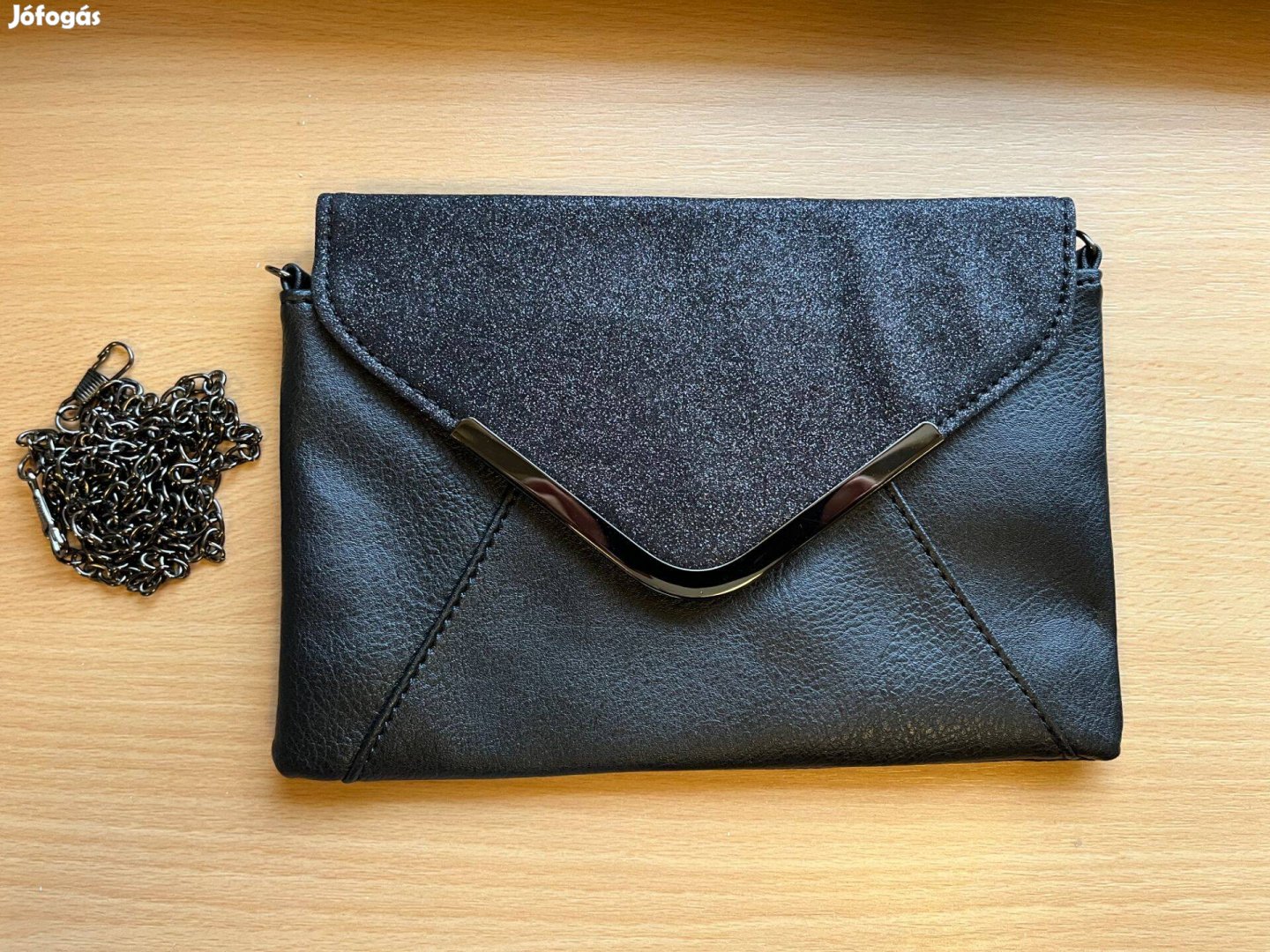 Fekete csillogó alkalmi boriték, válltáska, lánccal Új