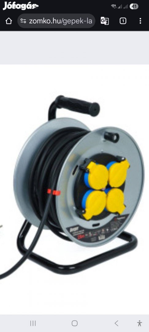 Kábeldob fém, 50m, 3x1.5mm2, gumikábel.