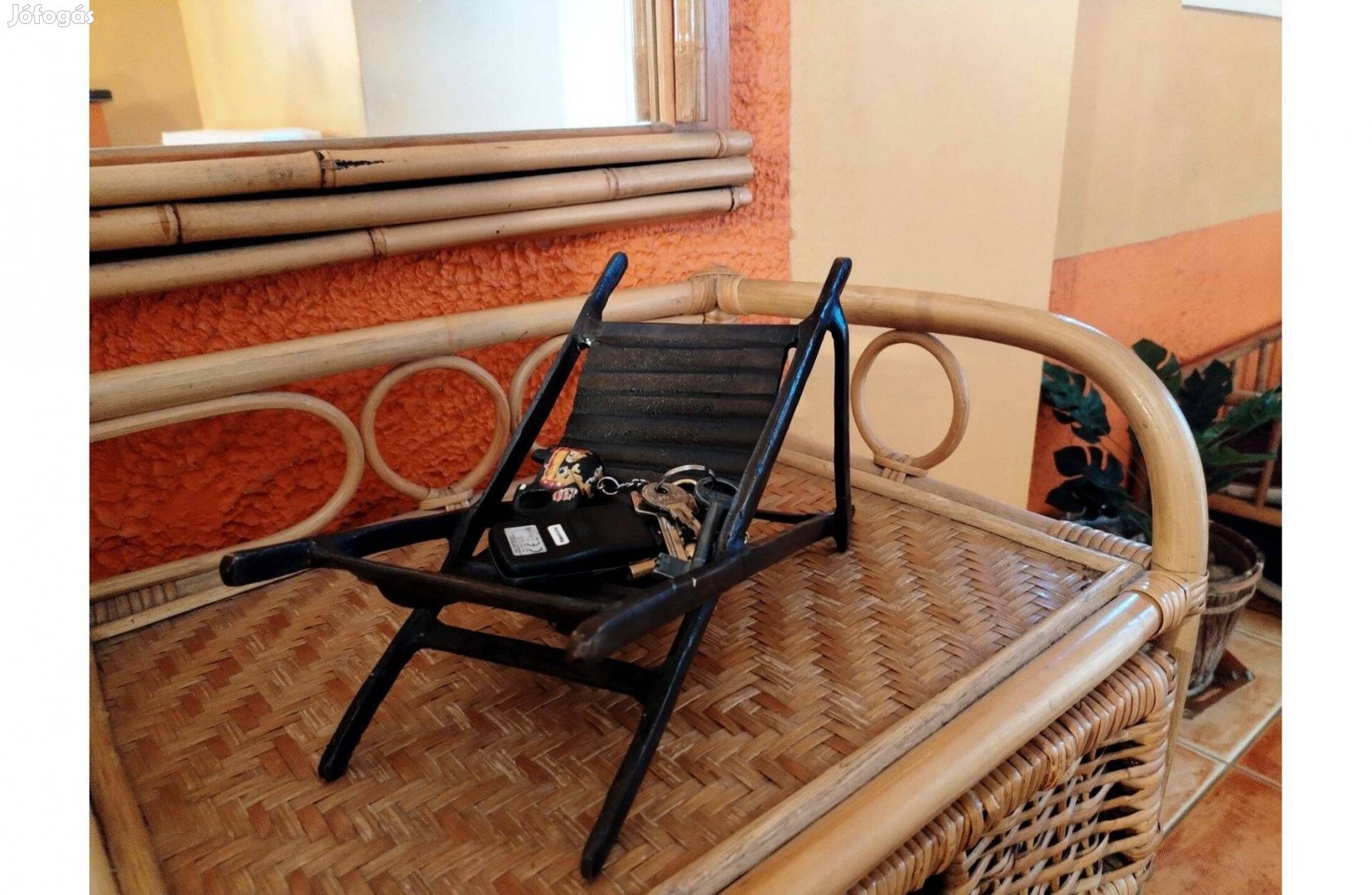 Eladó fém napozóágy dekorációnak. Ékszert, kisebb tárgyakat, kulcsot stb. is pakolhatunk a közepébe! Mérete: 12 cm széles, 19 cm az ülőrész, 27 cm a kinyúló "karfarésszel". Jó masszív, nehéz darab!