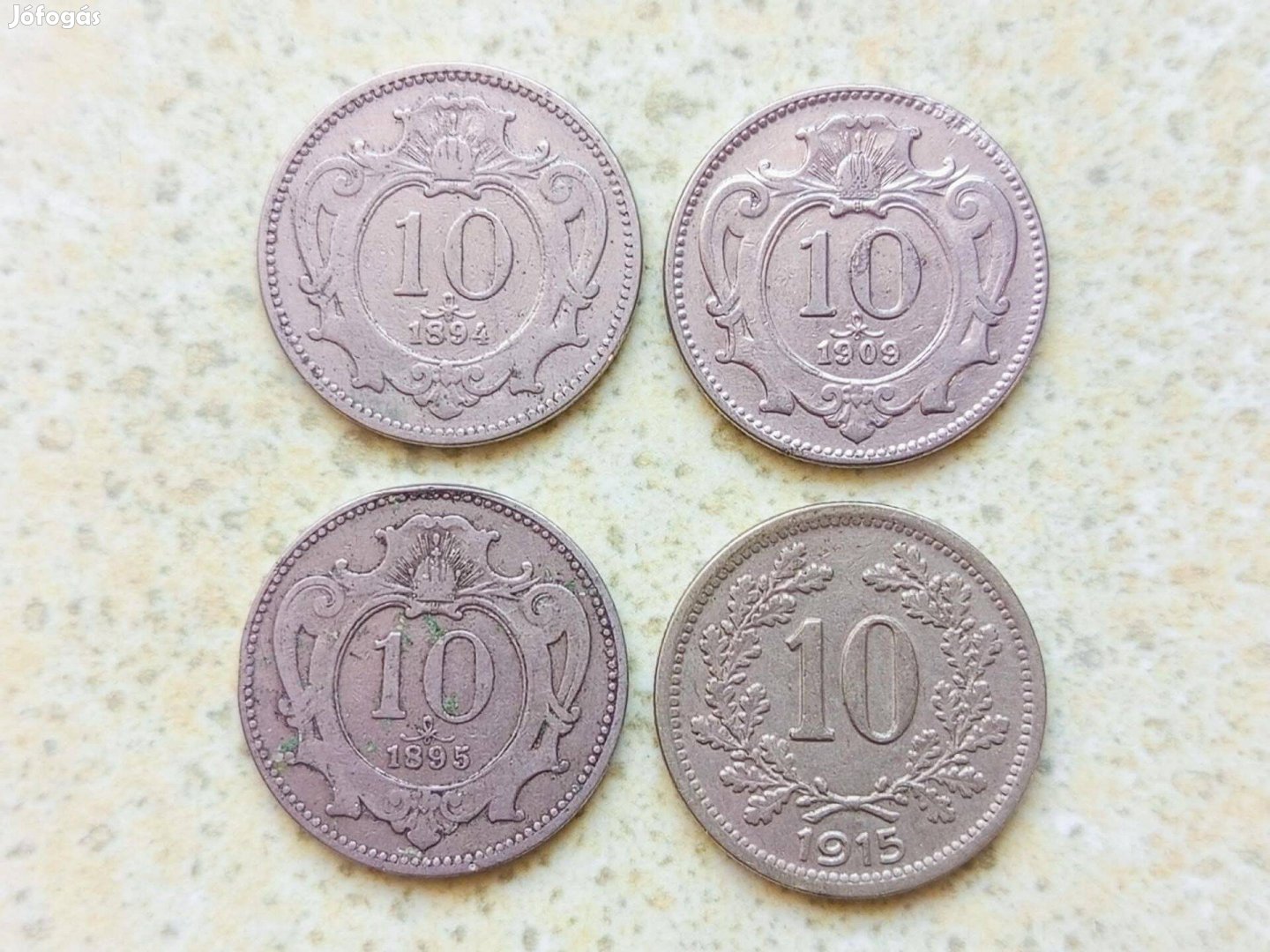 Ferenc József 4 db Különböző Érme 10 Heller Fillér 1894-1915 Habsburg