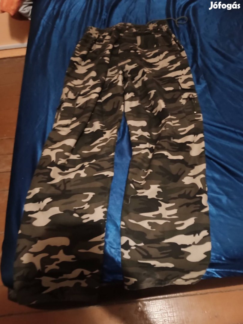 XL méretű terepmintás gumis és megkötős derekú férfi nadrag.