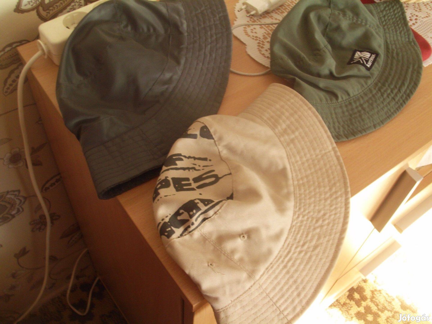 Sapkák újak, bolti ár alatt eladók. A színük a valóságban több árnyalattal sötétebb. A zöld színű vékonyabb anyagú, a szürke színű pedig kissé pigmentált, vagyis vízlepergető anyagú (belül bélelt). Ár egyben 3900Ft vagy külön is a három 2000Ft/db. Postázás 1490Ft, esetleges átadás Abony, Szolnok, Cegléd, Budapest megoldható.