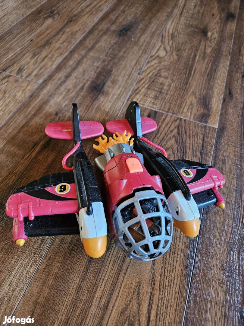 Imaginext harci repülő, barna ruhás pilótával, az Égi urai sorozat egyik szereplője. A repülő két motorral rendelkezik, fékezőkampóval, és egy lángoló korongot lő ki magából. A repülő orr-része előretolható, így a pilóta ki és be tud szállni a vadászgépbe. Méretek: 22 x 33 cm, figura mérete: 7 cm.