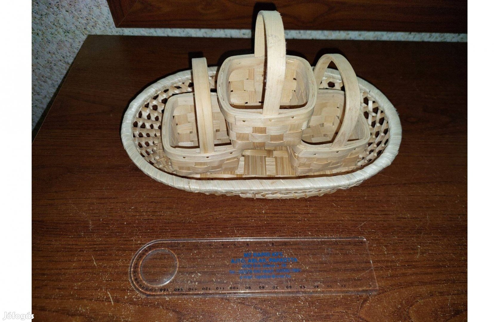 Eladó 3 db kis fonott kosár fogantyúkkal és 1 db fonott tál, kiváló állapotban!