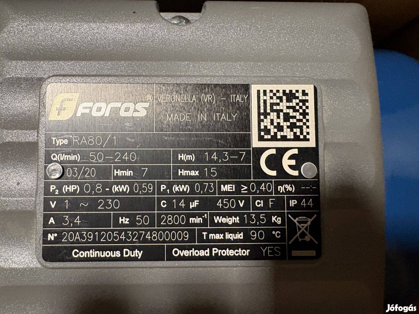 Eladó egy 4 évvel ezelőtt vásárolt de soha nem használt, azaz gyakorlatilag új Foras RA 80/1 enyhén szennyezett víz szivattyú, dobozával, használati utasítással. Helyileg Ürömön, de Budapest környékén ingyen házhoz szállítom, illetve kis logisztikával Nyíregyházi átvétel is megoldható.
