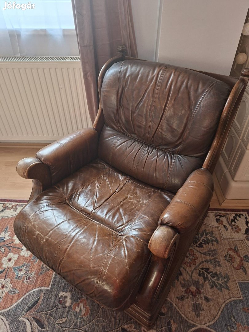 2 db masszív, tömörfa szerkezetű bőrfotel eladó. 80cm széles, 100 cm mély, 90 cm magas. A 2 db együtt eladó 25.000 ftért, Csobánkáról elvihető. Kérem üzenetben érdeklődjenek.